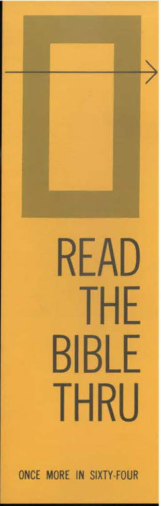Catchy phrases were sometimes used to encourage reading—“Read it through in ’62”, “Once more in ‘64”, etc.—and many adults can look back to their adolescence when they got into the habit of reading God’s Word daily.