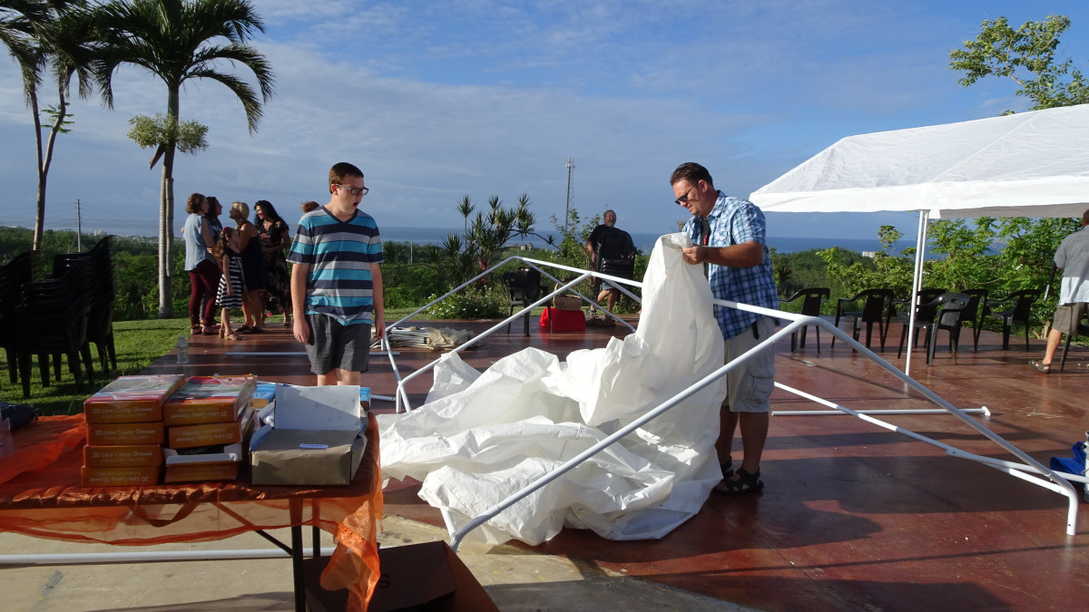 Hugo: I expected to see the congregation as very sad, defeated, needy. Yet, on Sunday morning the service started at 8:30 and the people arrived maybe two hours before that to put together some tents [shaking his head]. It was amazing to see. They had lost everything—everything you use to do ministry—but they started right away with a service, serving the community. A lot of their congregation are [now] in the states. But they are not waiting on anybody—only trusting God and continuing to serve Rincon.